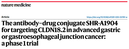 凯发k8医药CLDN18.2 ADC创新药SHR-A1904治疗胃癌临床研究结果荣登Nature Medicine